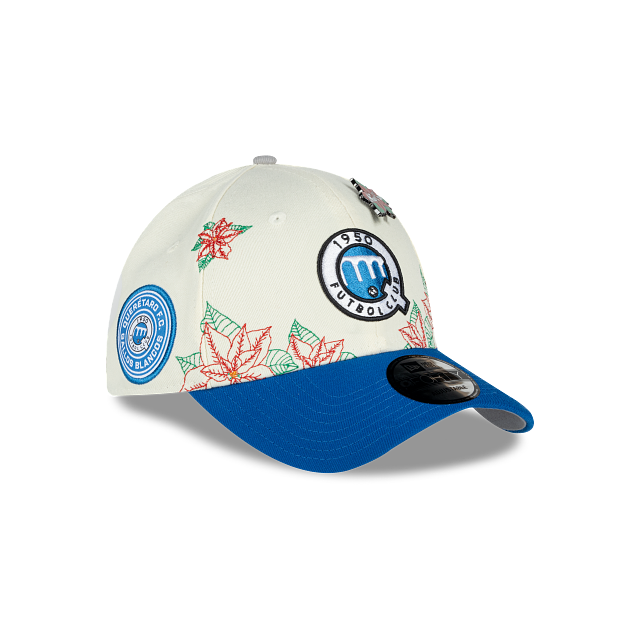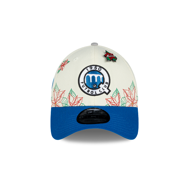Esta gorra curva New Era 9FORTY de Club Querétaro de la colección Futbol Mexicano Nochebuena presenta un diseño con el logotipo del Querétaro bordado en los paneles frontales junto con un pin en forma de flor de nochebuena, hojas de nochebuena en toda la corona, un parche representativo del equipo del lado derecho y el flag de New Era bordado del lado izquierdo. Cómprala ya.