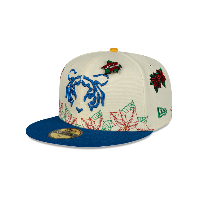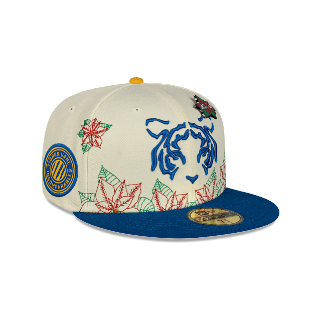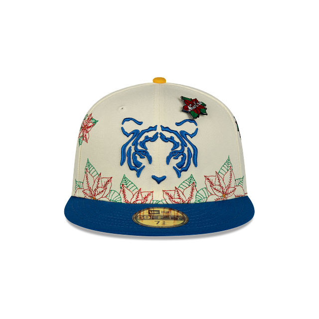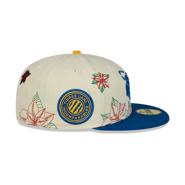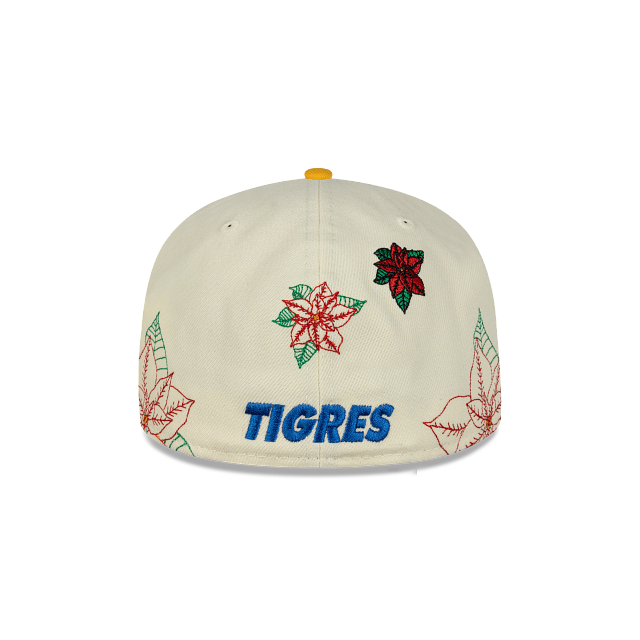 Esta gorra plana New Era 59FIFTY de Club Tigres de la colección Futbol Mexicano Nochebuena presenta un diseño con el logotipo de los Tigres bordado en los paneles frontales junto con un pin en forma de flor de nochebuena, hojas de nochebuena en toda la corona, un parche representativo del equipo del lado derecho, el nombre del equipo al reverso y el flag de New Era bordado del lado izquierdo. Cómprala ya.