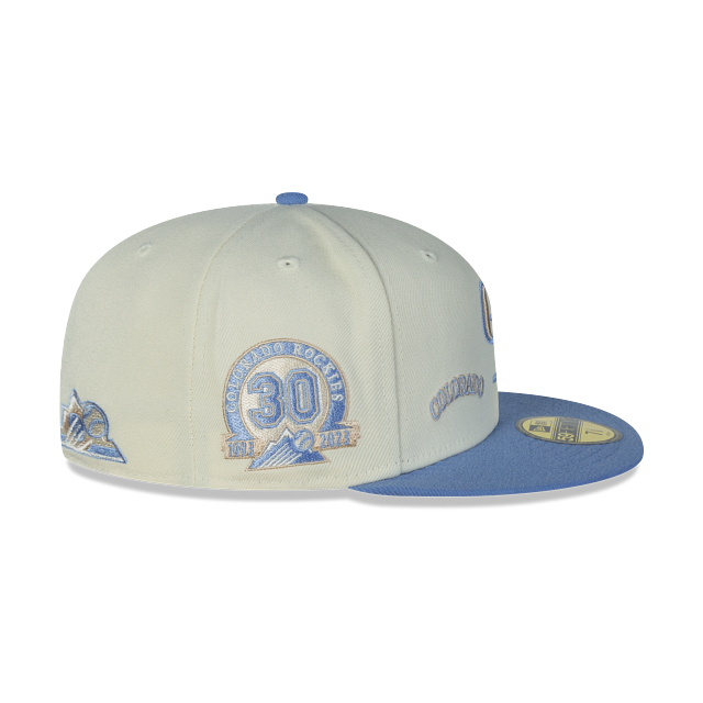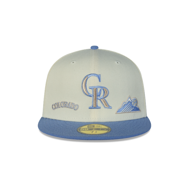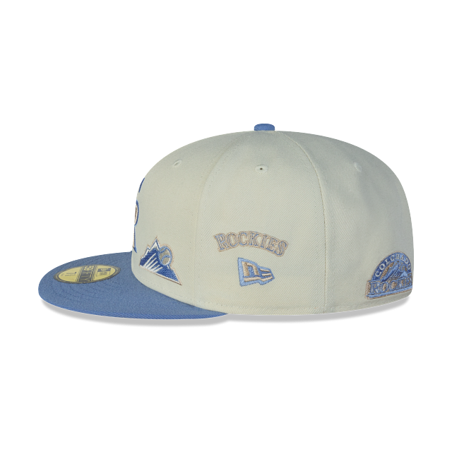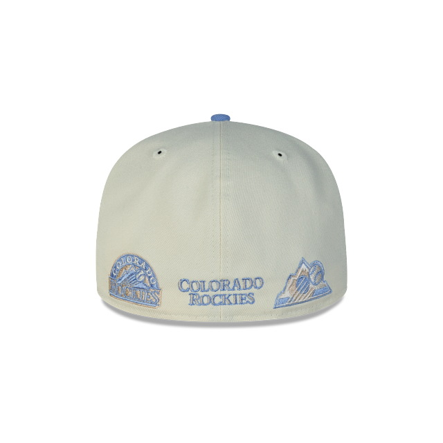 Esta gorra New Era 59FIFTY de Colorado Rockies de la colección MLB Mexico City Series 2024 presenta un diseño two tone estilo all over con diferentes logotipos de los Rockies bordados en la corona, visera azul y el flag de New Era bordado en el lado izquierdo. No te pierdas este artículo de colección y cómprala ya.