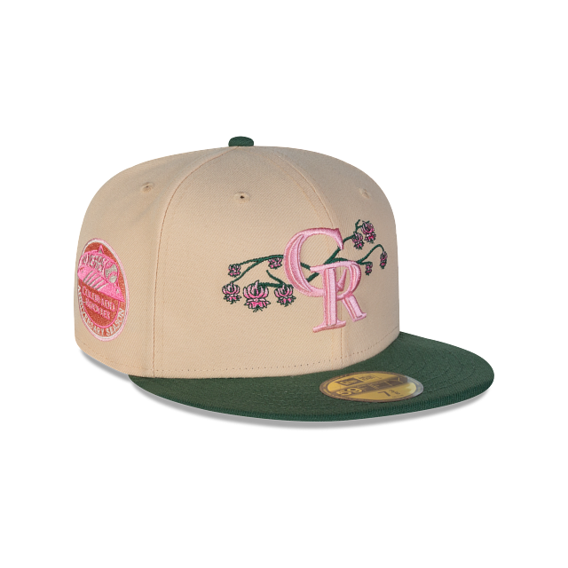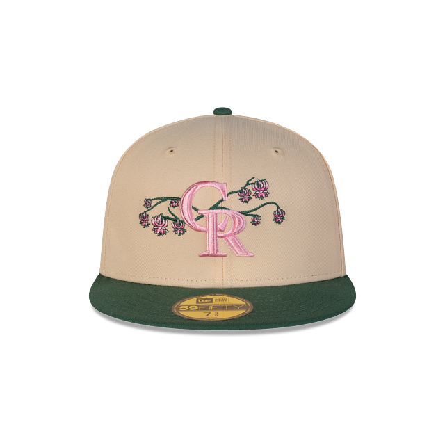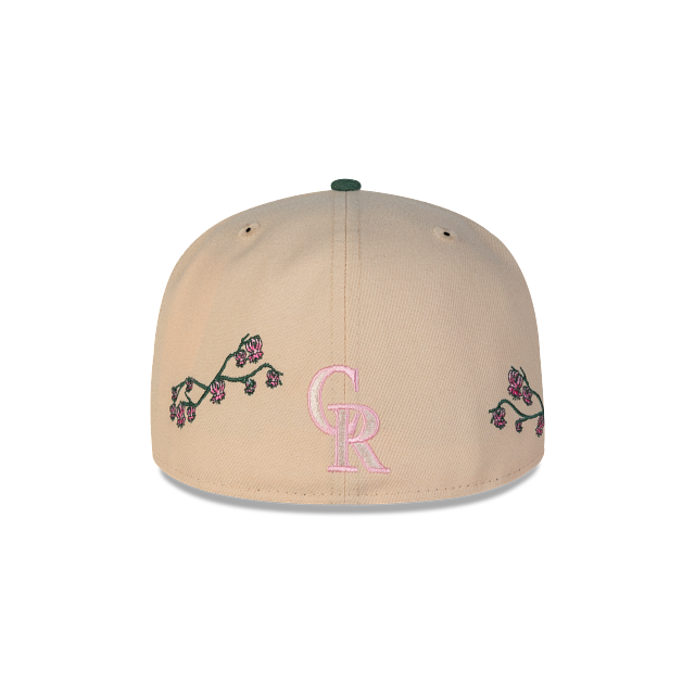 Esta gorra New Era 59FIFTY de Colorado Rockies de la colección MLB Mexico City Series 2024 presenta un diseño con flores atrás del logotipo de los Rockies bordado en los paneles frontales, un parche conmemorativo del lado derecho y el flag de New Era bordado en el lado izquierdo. No te pierdas este artículo de colección y cómprala ya.