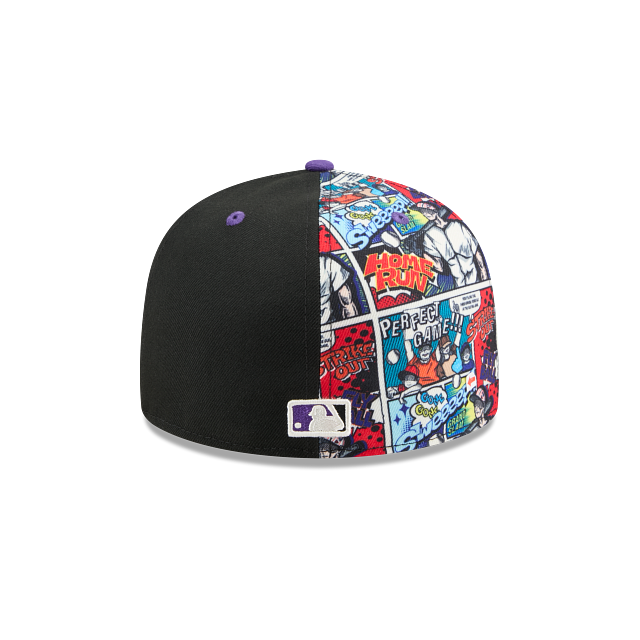 Esta gorra plana New Era 59FIFTY de Colorado Rockies de la colección MLB Diamond Hero Edition presenta un diseño inspirado en los cómics, el logotipo de los Rockies bordado en los paneles frontales, el MLB Batterman en la parte de atrás y el flag de New Era bordado del lado izquierdo. Cómprala ya.