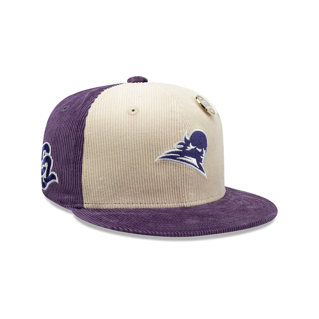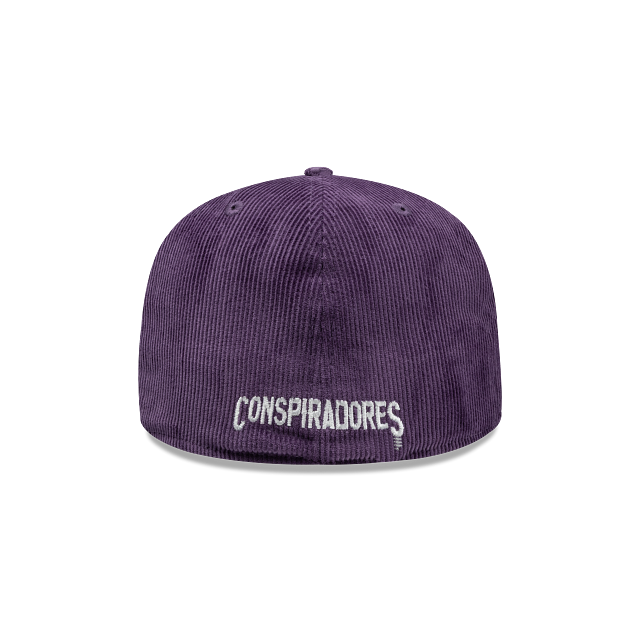 Esta gorra plana New Era 59FIFTY de Conspiradores de Querétaro de la colección LMB Corduroy Pin presenta un diseño en pana con el logotipo retro de los Conspiradores bordado en los paneles frontales junto con un pin New Era, el logo del equipo bordado del lado derecho, el nombre del equipo al reverso y el flag de New Era bordado del lado izquierdo. Cómprala ya.