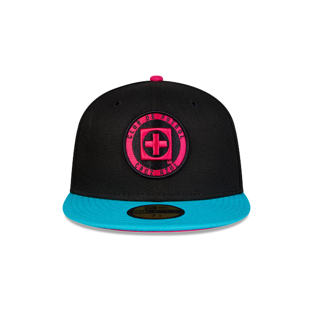 Esta gorra New Era 59FIFTY de Cruz Azul de la colección Cyber Collection presenta un diseño en tonos neón que destacan de una corona negra con el logotipo de Cruz Azul bordado en los paneles frontales, el nombre del equipo al reverso, visera azul y undervisor rosa, y el flag de New Era bordado en el lado izquierdo. Apoya a tu equipo con estilo y cómprala ya.