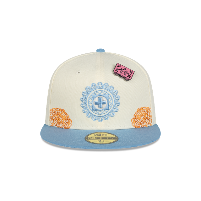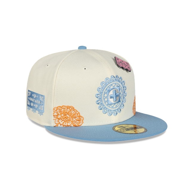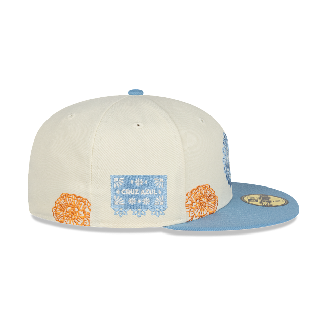 Esta gorra plana New Era 59FIFTY de Cruz Azul de la colección Día de Muertos presenta un diseño inspirado en la artesanía del papel picado con el logotipo del Cruz Azul bordado en los paneles frontales, detalles de flores de cempasúchil en la corona, el nombre del equipo del lado derecho y al reverso, un pin en forma de papel picado y el flag de New Era bordado del lado izquierdo. Cómprala ya.