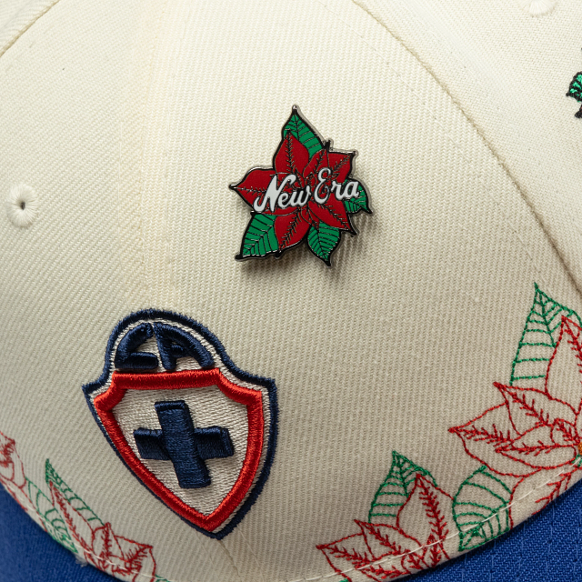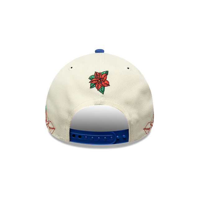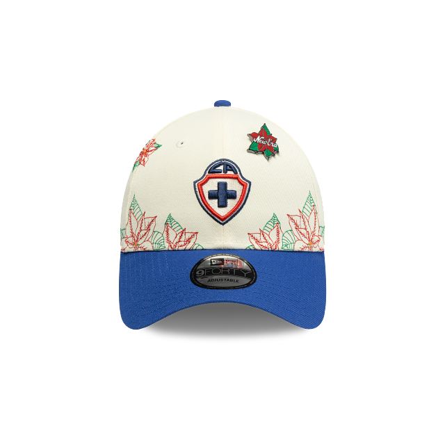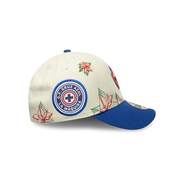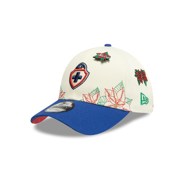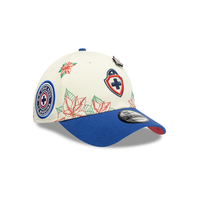 Esta gorra curva New Era 9FORTY de Cruz Azul de la colección Futbol Mexicano Nochebuena presenta un diseño con el logotipo del Cruz Azul bordado en los paneles frontales junto con un pin en forma de flor de nochebuena, hojas de nochebuena en toda la corona, un parche representativo del equipo del lado derecho y el flag de New Era bordado del lado izquierdo. Cómprala ya.