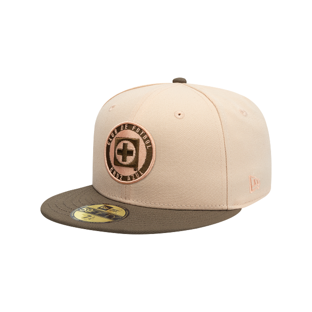 Esta gorra plana New Era 59FIFTY de Cruz Azul de la colección Futbol Mexicano LMX Peach presenta un diseño en color durazno con el logotipo de Cruz Azul bordado en los paneles frontales, el nombre del equipo en la parte de atrás y el flag de New Era bordado del lado izquierdo. Cómprala ya.