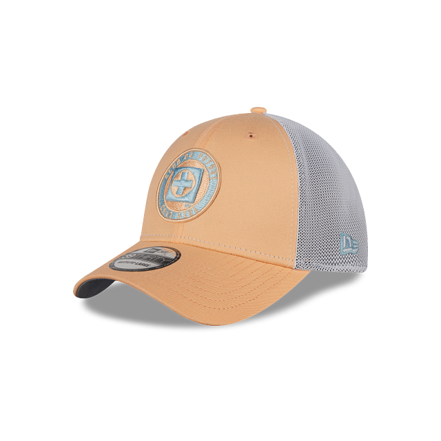 Esta gorra New Era 39THIRTY de Cruz Azul de la colección Peach Sky presenta un diseño en color pastel con el logotipo del Cruz Azul bordado en los paneles frontales, el nombre al reverso sobre un mesh blanco y el flag de New Era bordado en el lado izquierdo. Apoya a tu equipo y cómprala ya.