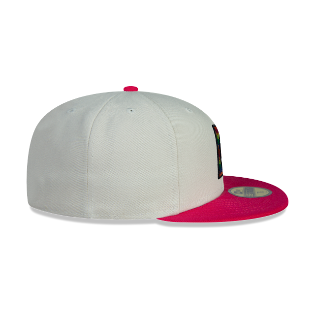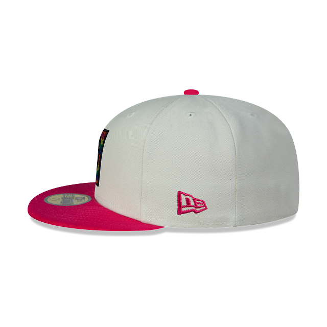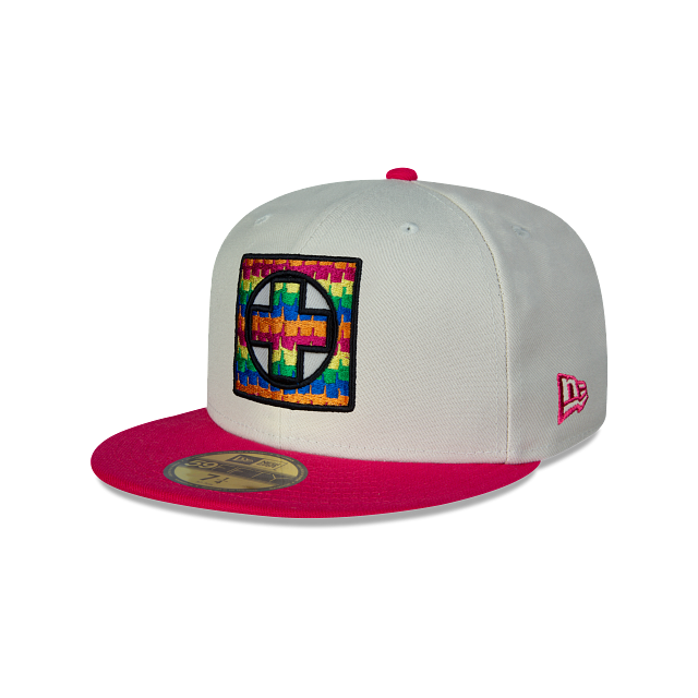 Esta gorra New Era 59FIFTY de Cruz Azul de la colección Piñata Collection presenta una corona blanca con el logotipo de Cruz Azul bordado en los paneles frontales, el nombre al reverso, visera rosa con undervisor de piñata y el flag de New Era bordado en el lado izquierdo. Apoya a tu equipo y cómprala ya.