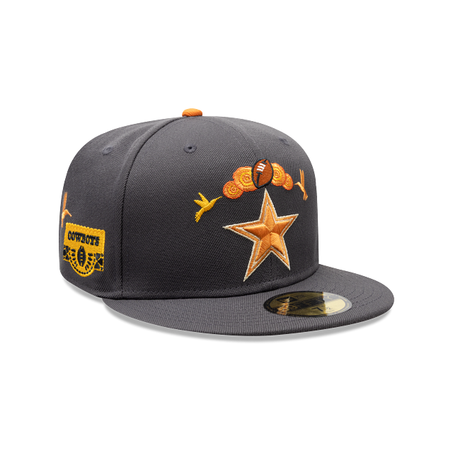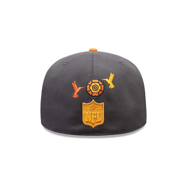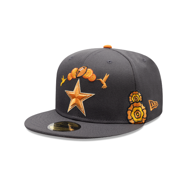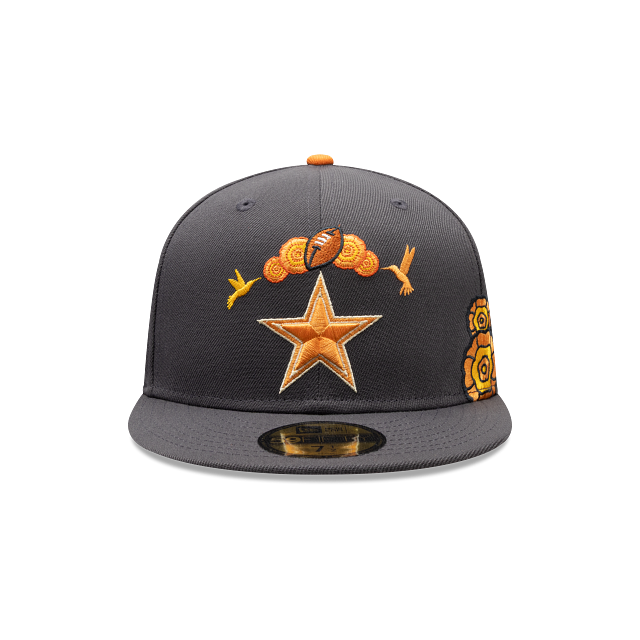 Esta gorra plana New Era 59FIFTY de Dallas Cowboys de la colección NFL Day Of The Dead presenta un diseño para conmemorar el Día de Muertos, flores de cempasúchil y debajo el logotipo de los Cowboys bordado en los paneles frontales, papel picado con el logo del equipo del lado derecho, el logo de la NFL en la parte de atrás y el flag de New Era bordado del lado izquierdo. Cómprala ya.