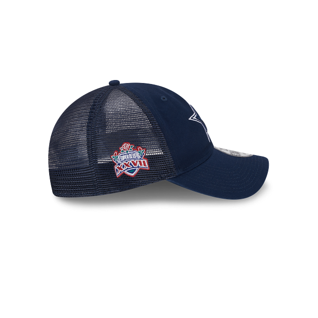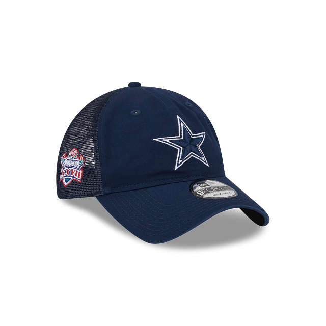 Esta gorra New Era 9TWENTY Trucker de Dallas Cowboys de la colección NFL Distinct presenta el logotipo de los Cowboys bordado en los paneles frontales, un parche conmemorativo del lado derecho, malla trucker al reverso, y el flag de New Era bordado en el lado izquierdo. Apoya a tu equipo y cómprala ya