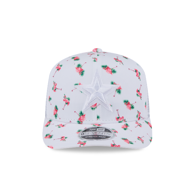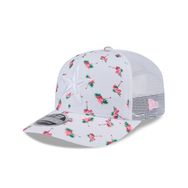 Esta gorra curva New Era 9SEVENTY Stretch Snap de Dallas Cowboys de la colección NFL Flamingo Pattern presenta un diseño con flamencos en la corona y visor, el logotipo de los Cowboys bordado en los paneles frontales, malla trucker al reverso y el flag de New Era bordado del lado izquierdo. Cómprala ya.