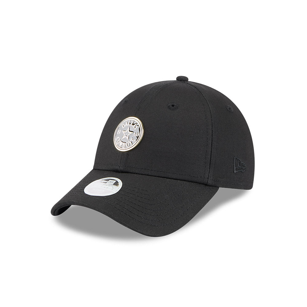 Esta gorra curva New Era 9FORTY de Dallas Cowboys para Mujer de la colección NFL Metallic Badge presenta un diseño en color negro con una placa con el nombre y logotipo de los Cowboys en los paneles frontales y el flag de New Era bordado del lado izquierdo. Cómprala ya.