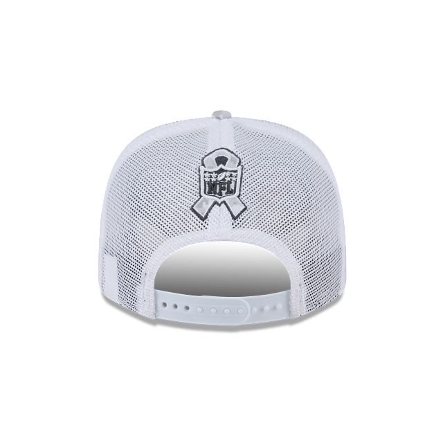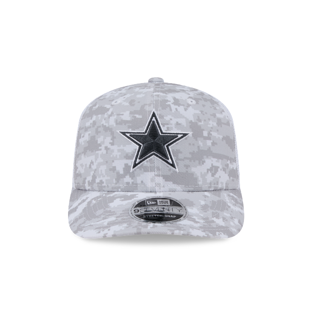 Esta gorra curva New Era 9SEVENTY de Dallas Cowboys de la colección NFL Salute to Service 2024 presenta un diseño de camuflaje con el logotipo de los Cowboys bordado en los paneles frontales, la bandera de Estados Unidos del lado derecho, malla estilo trucker y el logo de la NFL al reverso y el flag de New Era bordado del lado izquierdo. Apoya a tu equipo y cómprala ya.