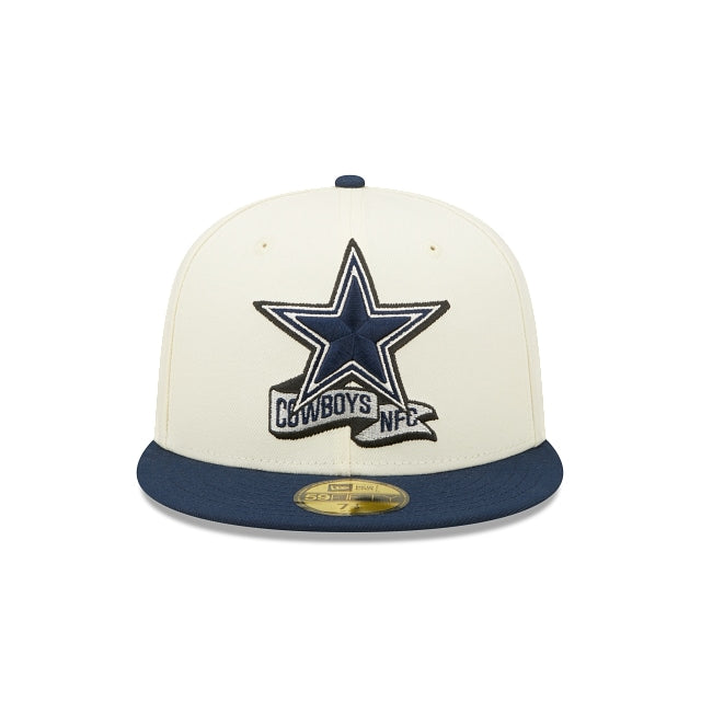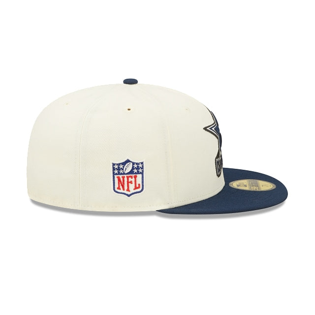 La temporada de la NFL ya esta aquí. Representa a tu equipo con esta gorra New Era 59FIFTY de Dallas Cowboys NFL Sideline 2022 la cual presenta el logo del equipo bordado en los paneles frontales a juego con una bandera con el nombre y su conferencia, un parche de la NFL en el lado derecho y un logo del equipo en la parte trasera. Cómprala ya.