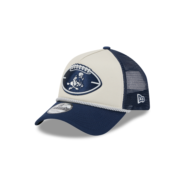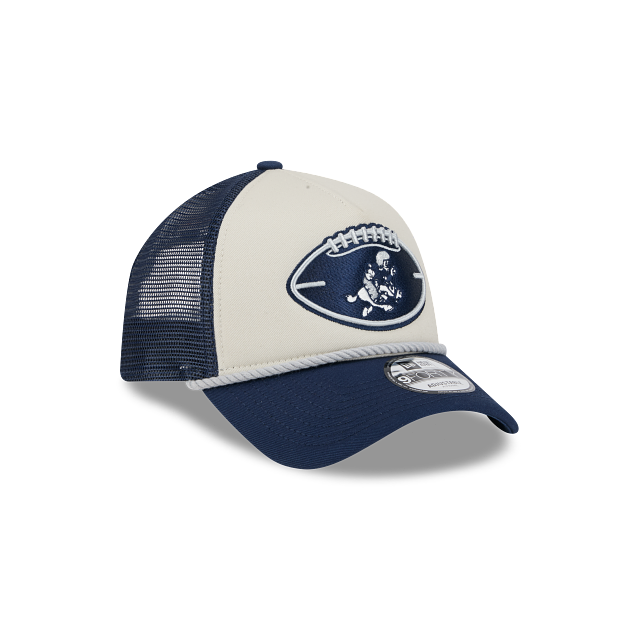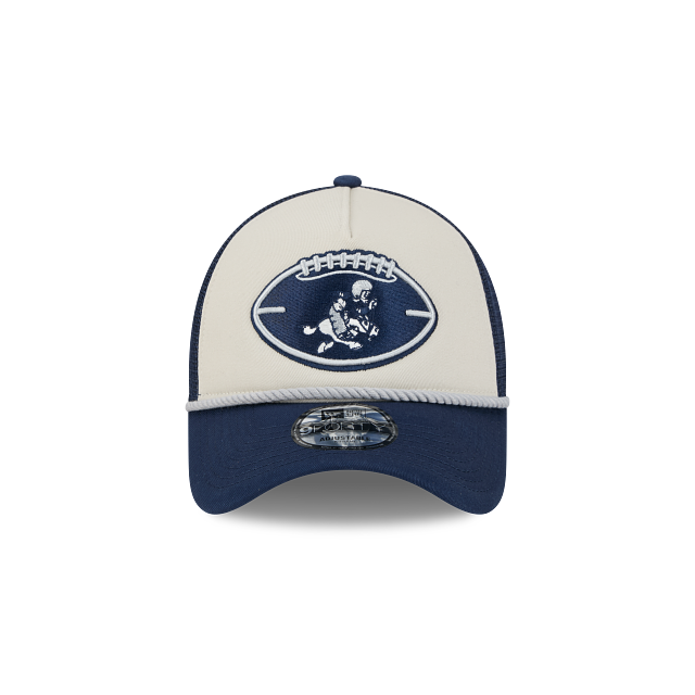 Esta gorra curva New Era 9FORTY AF de Dallas Cowboys de la colección NFL Sideline Historic 2024 presenta un diseño con el logotipo histórico de los Cowboys dentro de un balón de futbol americano bordado en los paneles frontales, una decoración de cuerda trenzada en el visor, malla trucker y el logo de la NFL al reverso y el flag de New Era bordado del lado izquierdo. Apoya a tu equipo y cómprala ya.