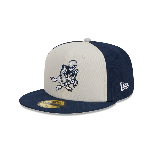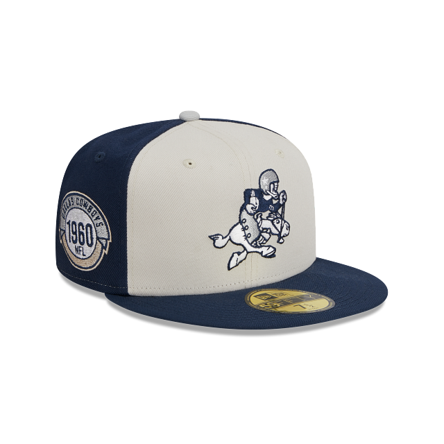 Esta gorra New Era 59FIFTY de Dallas Cowboys de la colección NFL Sideline Historic presenta el logotipo retro de los Cowboys bordado en los paneles frontales, un parche con el año de su fundación del lado derecho, y el flag de New Era bordado en el lado izquierdo. Apoya a tu equipo y cómprala ya.