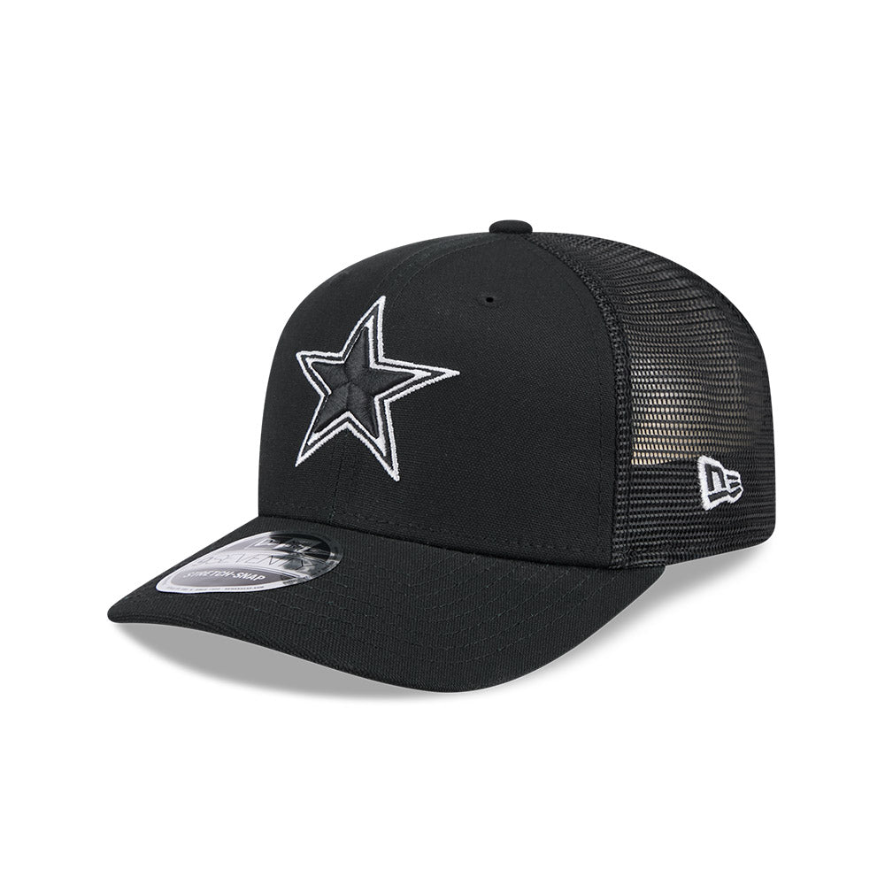 Esta gorra New Era 9SEVENTY de Dallas Cowboys de la colección NFL Trucker Canvas presenta un diseño con el logotipo de los Cowboys bordado en los paneles frontales, malla trucker al reverso y el flag de New Era bordado del lado izquierdo. Apoya a tu equipo y cómprala ya.