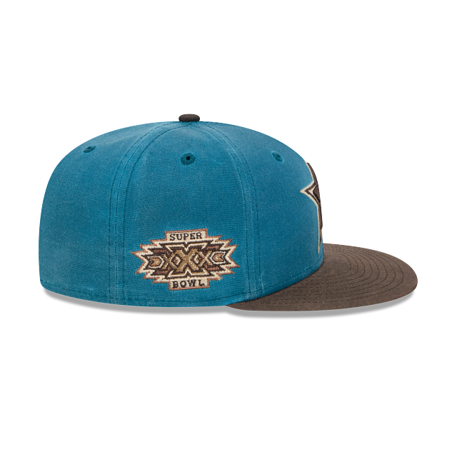 Esta gorra plana New Era 59FIFTY de Dallas Cowboys de la colección NFL Vintage Blue presenta un diseño con el logotipo de los Cowboys bordado en los paneles frontales, parche conmemorativo del lado derecho, el logo de la liga al reverso y el flag de New Era bordado del lado izquierdo. Cómprala ya.
