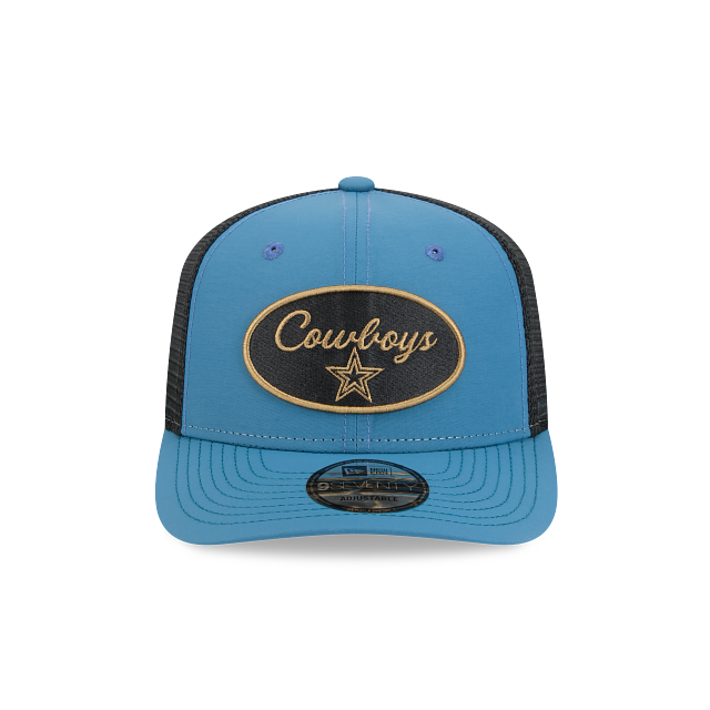 Esta gorra curva New Era 9SEVENTY de Dallas Cowboys de la colección NFL Vintage Trucker presenta un diseño con el nombre de los Cowboys bordado en los paneles frontales, malla trucker al reverso y el flag de New Era bordado del lado izquierdo. Apoya a tu equipo y cómprala ya.