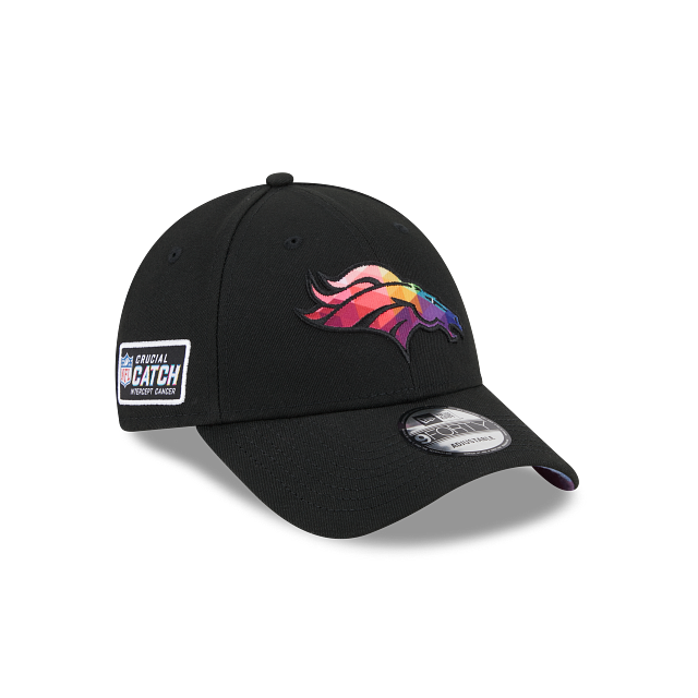 Esta gorra New Era 9FORTY de Denver Broncos de la colección NFL Crucial Catch 2023 presenta un diseño totalmente negro que contrasta con el logotipo de los Broncos y el undervisor con toques multicolor, y el flag de New Era bordado en el lado izquierdo. Apoya a tu equipo y cómprala ya.