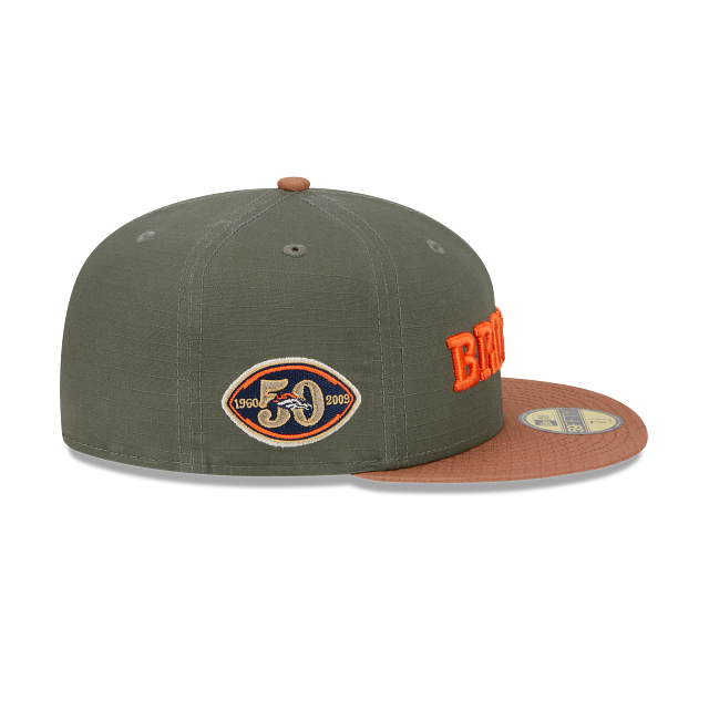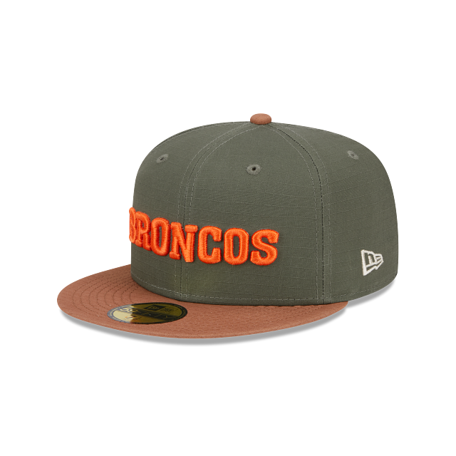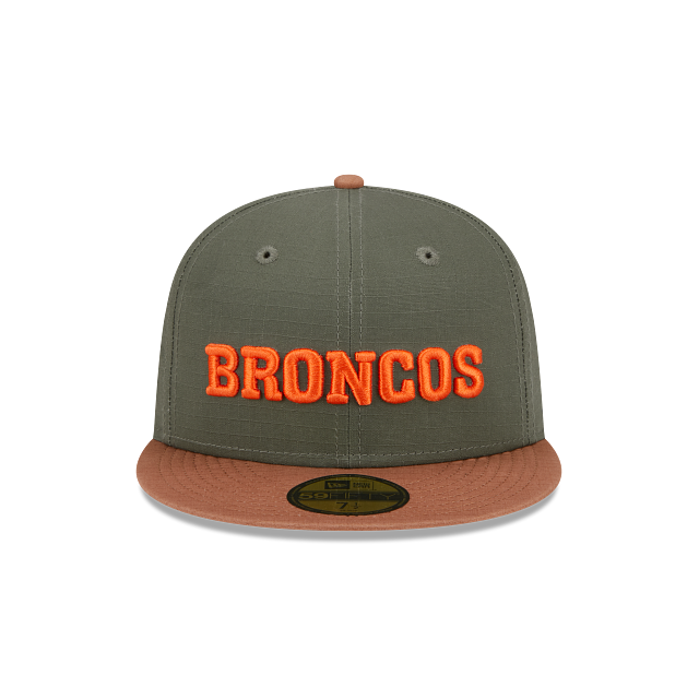 Esta gorra New Era 59FIFTY de Denver Broncos de la colección NFL Ripstop presenta un diseño two tone con la corona en color verde olivo y la visera café, el nombre de los Broncos bordado al frente, un parche conmemorativo del lado derecho, el logo de NFL dorado al reverso y el flag de New Era bordado en el lado izquierdo. Apoya a tu equipo y cómprala ya.
