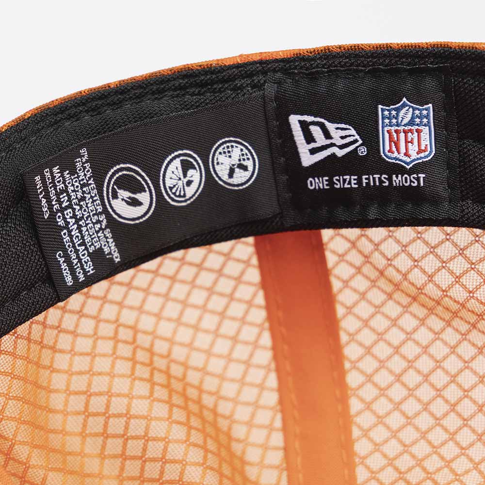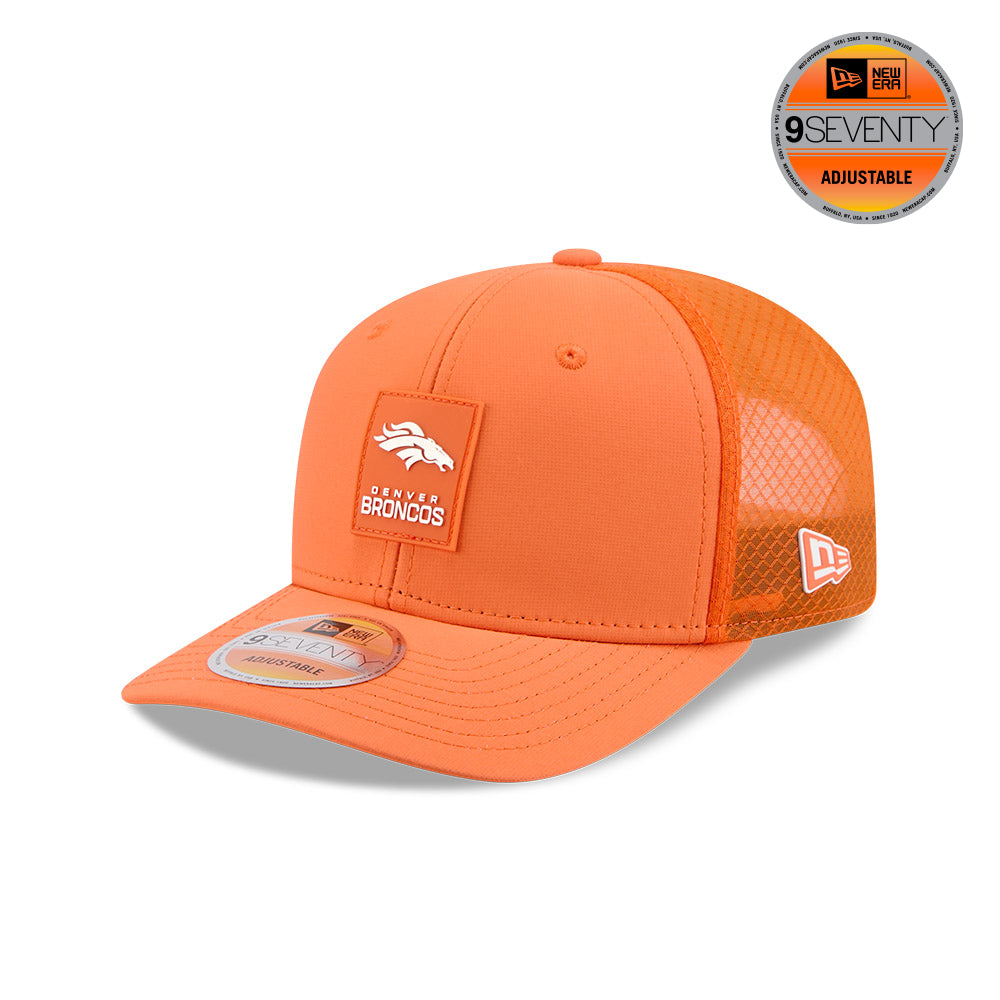 Esta gorra curva New Era 9SEVENTY de Denver Broncos de la colección NFL Sideline Hot Weather 2025 incorpora tecnología HOT que mejora el rendimiento y la comodidad: COOLERA con banda interior que absorbe la humedad y secado rápido para uso durante todo el día, DRYERA con tela repelente al agua y COMFORT con material ligero para una sensación suave y ajuste cómodo.