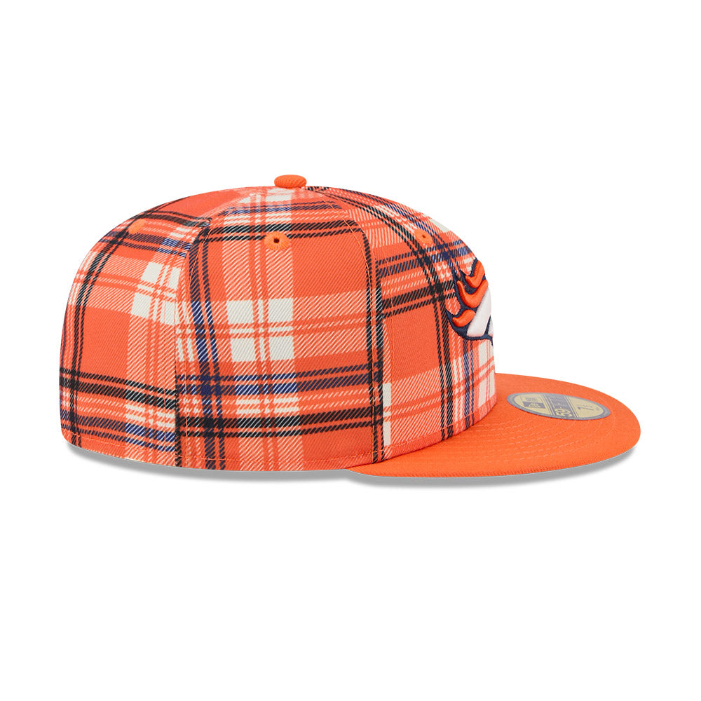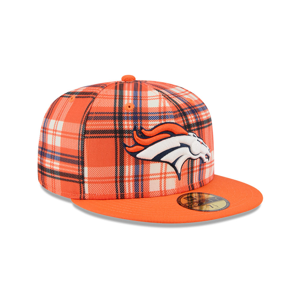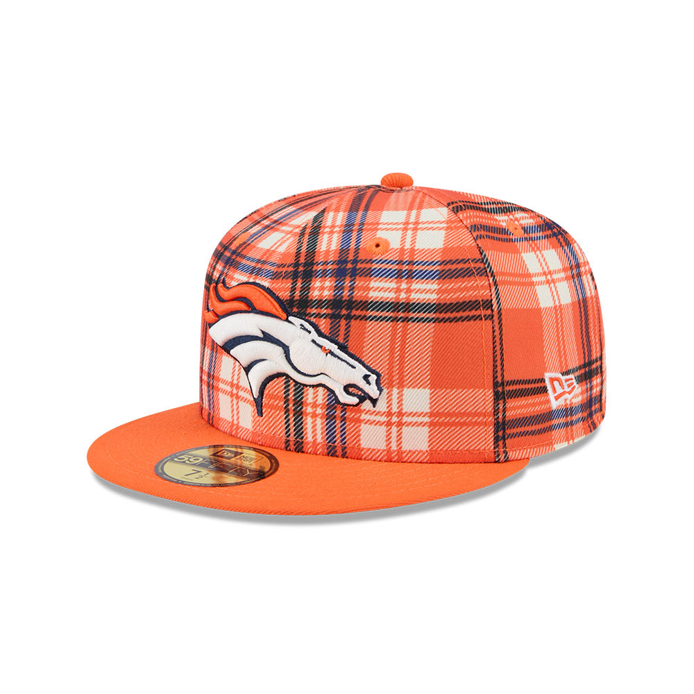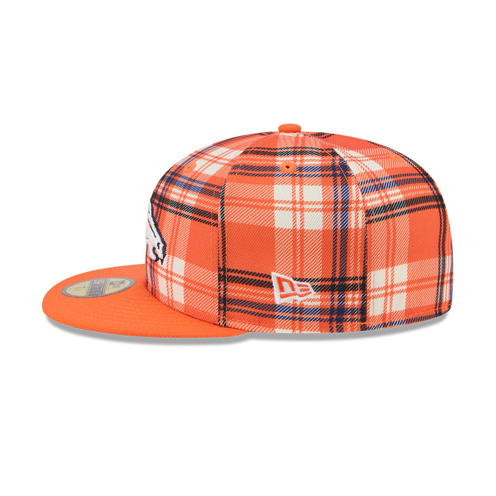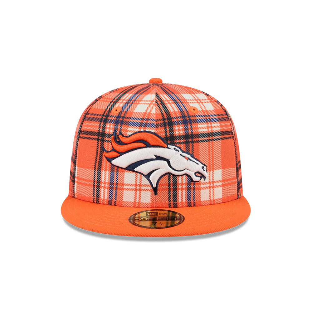 Esta gorra plana New Era 59FIFTY de Denver Broncos de la colección NFL Sideline 2024 presenta un diseño a cuadros con el logotipo de los Broncos bordado en los paneles frontales y el flag de New Era bordado en el lado izquierdo. Cómprala ya.