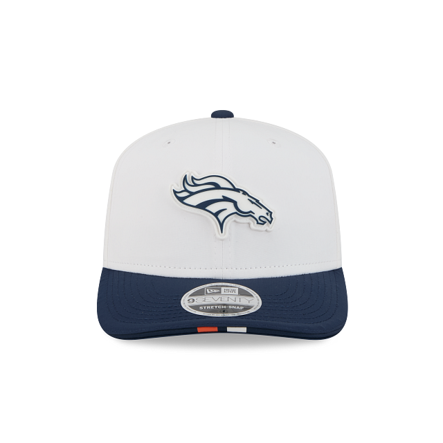 Esta gorra curva New Era 9SEVENTY Stretch Snap de Denver Broncos de la colección NFL Training 2025 presenta una corona en color blanco con el logotipo de los Broncos engomado en los paneles frontales, el logo de la NFL al reverso y el flag de New Era engomado del lado izquierdo. Apoya a tu equipo y cómprala ya.