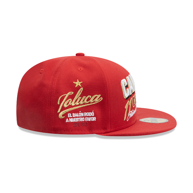 Esta gorra plana New Era 59FIFTY de Deportivo Toluca FC de la colección Toluca Campeón presenta la frase Campeón CL25 Hicimos Historia y el logotipo de los Toluca bordado en los paneles frontales, el nombre del equipo dellado derecho, una corona en la parte de atrás y el flag de New Era bordado del lado izquierdo. Cómprala ya.