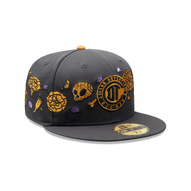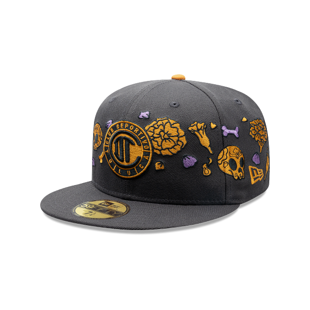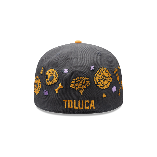 Esta gorra plana New Era 59FIFTY de Deportivo Toluca FC de la colección Futbol Mexicano Día de Muertos presenta un diseño para conmemorar el Día de Muertos con flores de cempasúchil y calaveritas bordadas en la corona, el logotipo de los Toluca bordado en los paneles frontales, el nombre del equipo en la parte de atrás y el flag de New Era bordado del lado izquierdo. Cómprala ya.