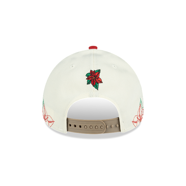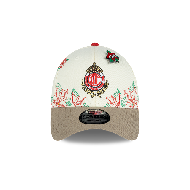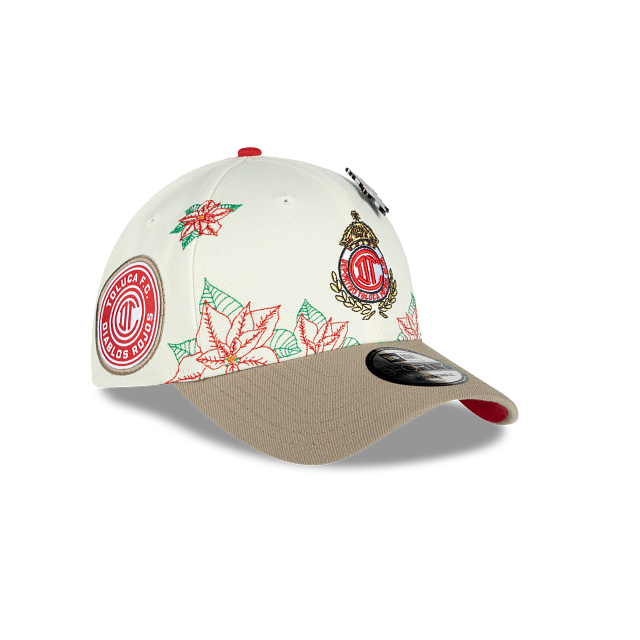 Esta gorra curva New Era 9FORTY de Deportivo Toluca FC de la colección Futbol Mexicano Nochebuena presenta un diseño con el logotipo del Toluca bordado en los paneles frontales junto con un pin en forma de flor de nochebuena, hojas de nochebuena en toda la corona, un parche representativo del equipo del lado derecho y el flag de New Era bordado del lado izquierdo. Cómprala ya.