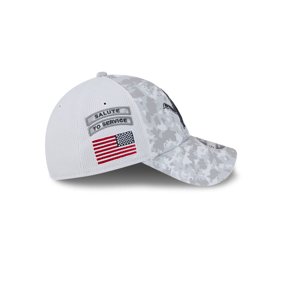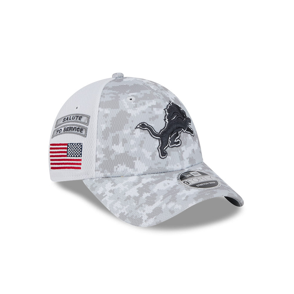 Esta gorra curva New Era 9FORTY de Detroit Lions de la colección NFL Salute to Service 2024 presenta un diseño de camuflaje con el logotipo de los Lions bordado en los paneles frontales, la bandera de Estados Unidos del lado derecho, el logo de la NFL al reverso y el flag de New Era bordado del lado izquierdo. Apoya a tu equipo y cómprala ya.
