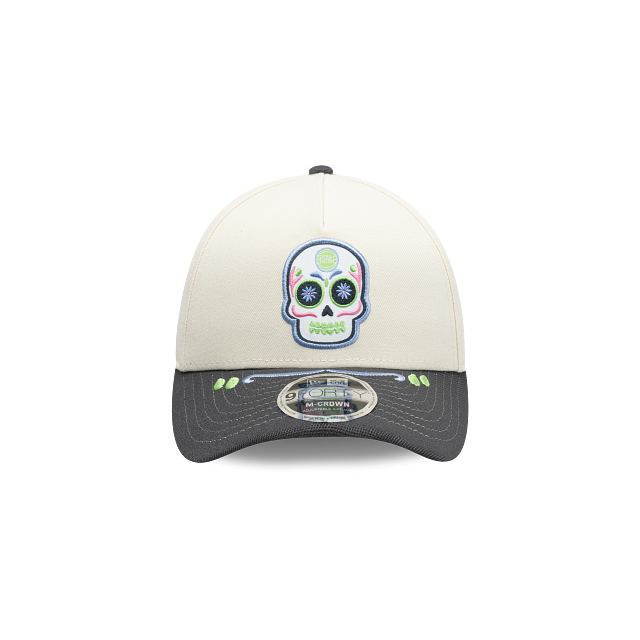 Esta gorra curva New Era 9FORTY A-Frame de Detroit Pistons de la colección NBA Mexico City Game 2025 presenta un diseño inspirado en el Día de Muertos, el logotipo de los Pistons dentro de una calaverita de azúcar bordada en los paneles frontales, el nombre del equipo en la parte de atrás y el flag de New Era bordado del lado izquierdo. Cómprala ya.