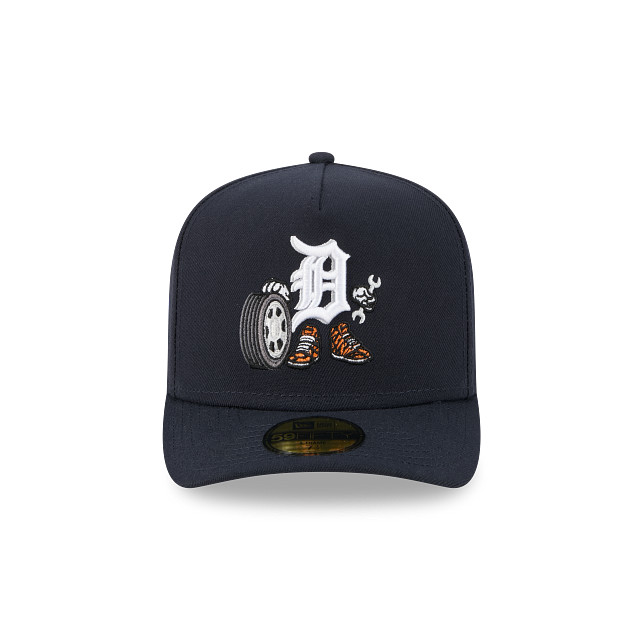 Esta gorra curva New Era 59FIFTY A-Frame de Detroit Tigers de la colección MLB Cartoon presenta el logotipo de los Tigers versión animada bordado en el panel frontal, el logo del equipo del lado derecho, el MLB Batterman al reverso y el flag de New Era bordado del lado izquierdo. Cómprala ya.