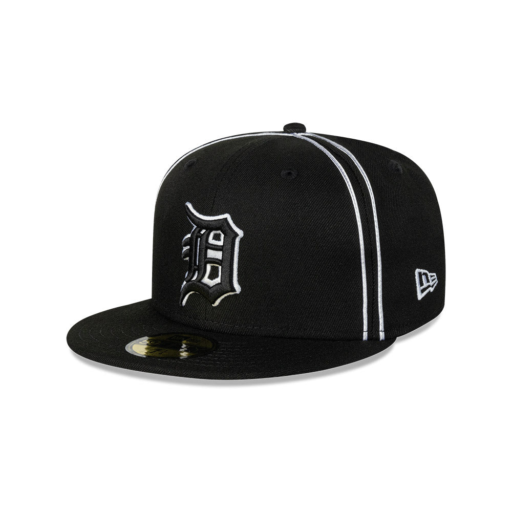 Esta gorra plana New Era 59FIFTY de Detroit Tigers de la colección MLB Piping presenta el logotipo de los Tigers bordado en los paneles frontales sobre un diseño con líneas blancas, un parche representativo del equipo de lado derecho y el flag de New Era bordado del lado izquierdo. Luce con estilo y cómprala ya.