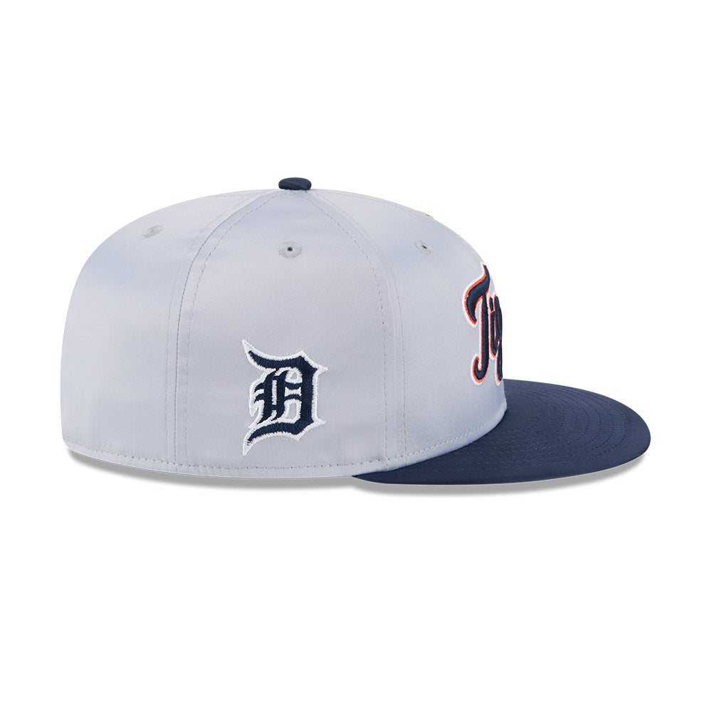 Esta gorra plana New Era 59FIFTY de Detroit Tigers de la colección MLB Satin presenta un diseño satinado con el nombre de los Tigers bordado en los paneles frontales acompañado de un pin New Era, el logotipo del equipo del lado derecho, el MLB Batterman al reverso y el flag de New Era bordado del lado izquierdo. Cómprala ya.