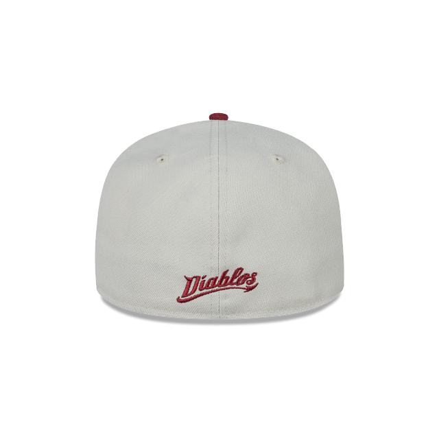 Esta gorra New Era 59FIFTY de Diablos Rojos del México de la colección Diablos Exclusive presenta un diseño two tone con la corona blanca y visera vino, el logotipo de los Diablos bordado en los paneles frontales, el nombre al reverso y el flag de New Era bordado en el lado izquierdo. Forma parte de la nación escarlata con estilo y cómprala ya.