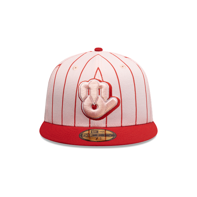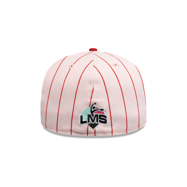 Esta gorra plana New Era 59FIFTY de Diablos Rojos del México de la colección LMS Game Caps 2025 presenta el logotipo de los Diablos bordado en los paneles frontales, el logo de la LMS al reverso y el flag de New Era bordado del lado izquierdo. Apoya a tu equipo y cómprala ya.