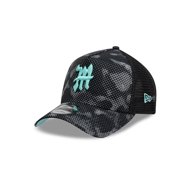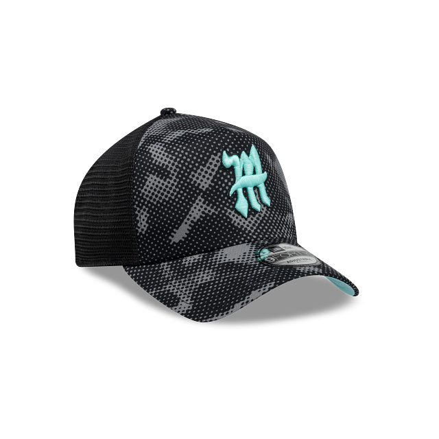 Esta gorra curva New Era 9FORTY A-Frame de Diablos Rojos del México de la colección LMB Fangear presenta un diseño de camuflaje con el logotipo de los Diablos bordado en los paneles frontales, malla trucker al reverso y el flag de New Era bordado del lado izquierdo. Cómprala ya.