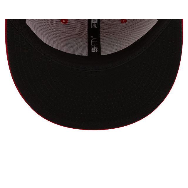 Apoya a tu equipo en esta temporada 2026 con esta gorra plana New Era 59FIFTY de Diablos Rojos del México de local que presenta el logotipo de los Diablos bordado en los paneles frontales, el logo de la LMB en la parte de atrás y el flag de New Era bordado del lado izquierdo. Cómprala ya.