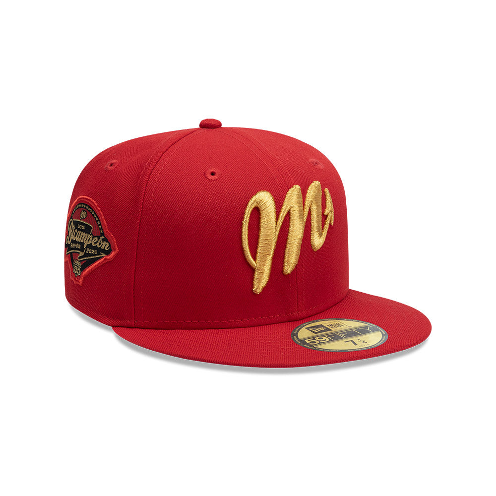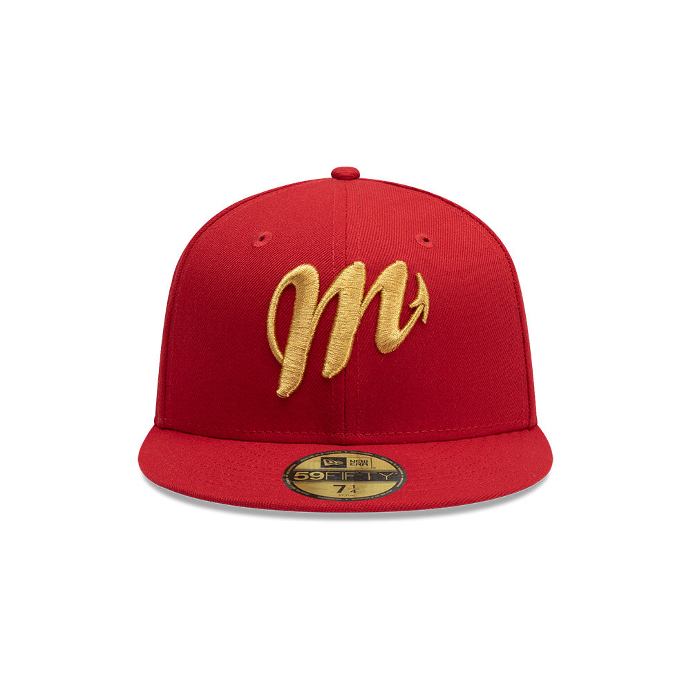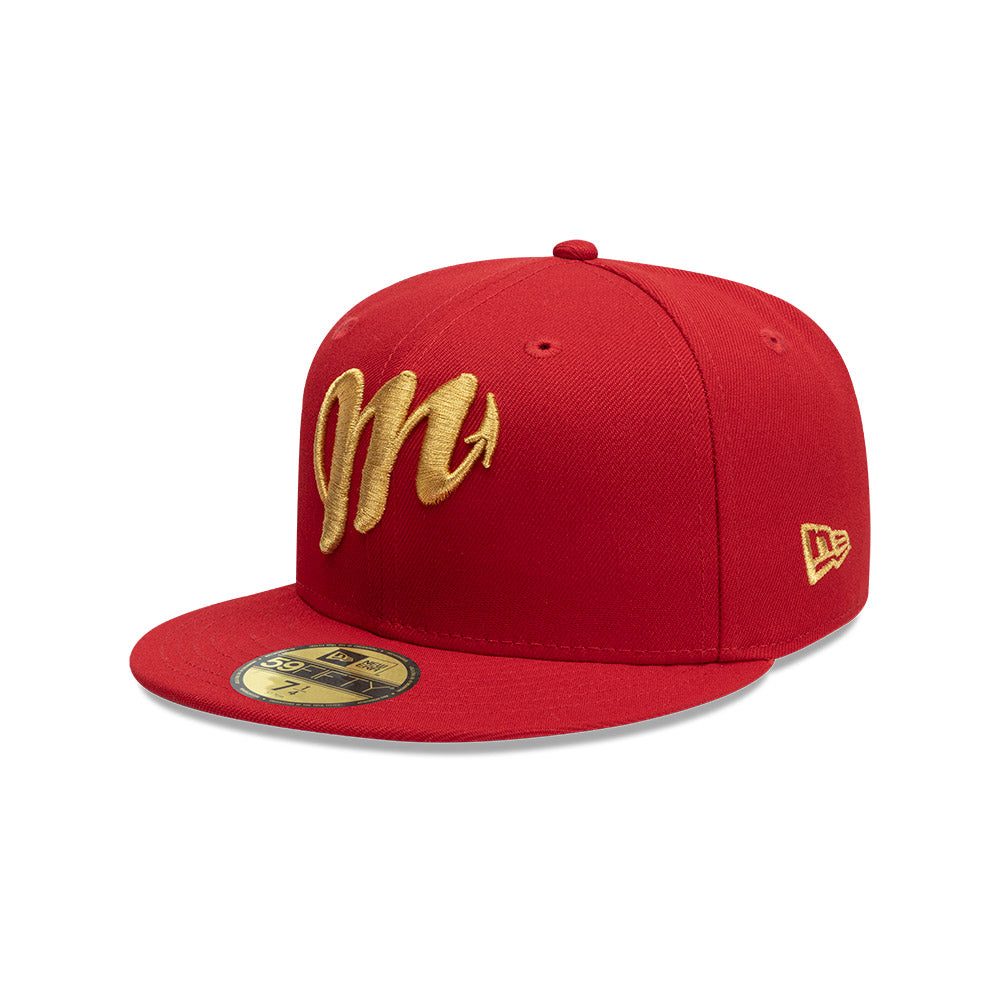 Esta gorra plana New Era 59FIFTY de Diablos Rojos del México de la colección LMB Gold Collection presenta el logotipo de los Diablos bordado en hilo dorado en los paneles frontales, parche de Bicampeón del lado derecho, el logo de la LMB en la parte de atrás y el flag de New Era bordado del lado izquierdo. Cómprala ya.