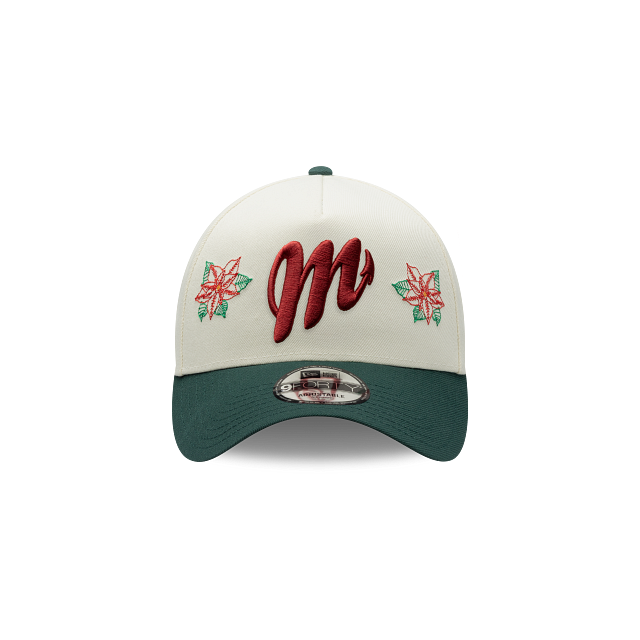 Esta gorra curva New Era 9FORTY A-Frame de Diablos Rojos del México de la colección LMB Nochebuena presenta un diseño con flores de nochebuena bordadas en la corona, el logotipo de los Diablos bordado en el panel frontal, el nombre del equipo en la parte de atrás y el flag de New Era bordado del lado izquierdo. Cómprala ya.