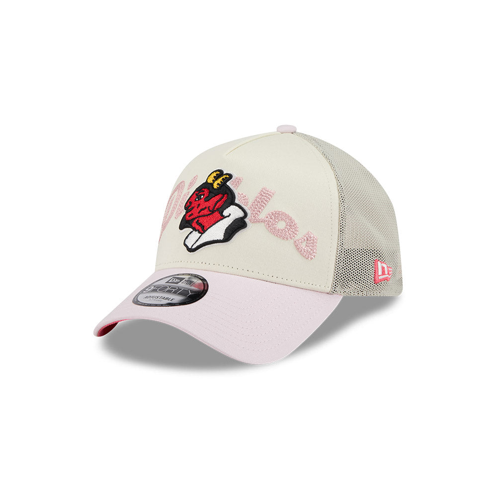 Esta gorra curva New Era 9FORTY A-Frame de Diablos Rojos del México de la colección LMB Restorative Garden presenta el logotipo alternativo de los Diablos bordado sobre el nombre del equipo en los paneles frontales, un parche representativo del equipo del lado derecho, malla trucker al reverso y el flag de New Era bordado del lado izquierdo. Cómprala ya.