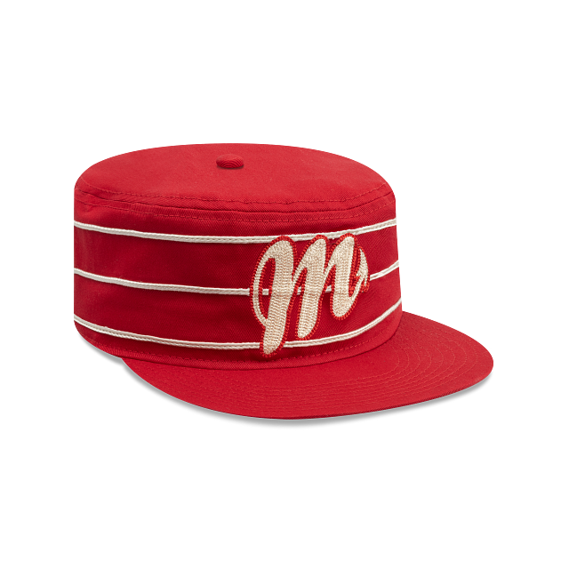 Esta gorra plana New Era Pillbox de Diablos Rojos del México de la colección LMB Retro presenta el logotipo de los Diablos bordado estilo chainstitch en la parte frontal, el logo de la LMB 100 Aniversario al reverso y el flag de New Era bordado del lado izquierdo. Cómprala ya.