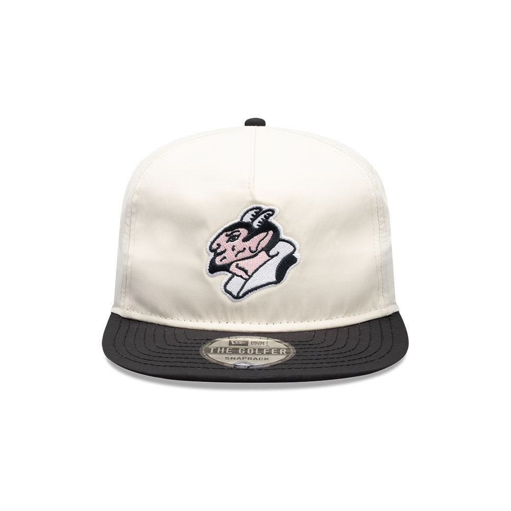Esta gorra plana New Era Golfer de Diablos Rojos del México de la colección LMB Team Exclusive presenta el logotipo alternativo de los Diablos bordado en los paneles frontales, la M bordada del lado derecho y el flag de New Era bordado del lado izquierdo. Cómprala ya.