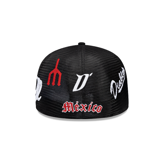 Esta gorra plana New Era 59FIFTY de Diablos Rojos del México de la colección LMB Team Exclusive presenta un diseño All Over con los logotipos y figuras icónicas de los Diablos en toda la corona de mesh y el flag de New Era bordado del lado izquierdo. Cómprala ya.