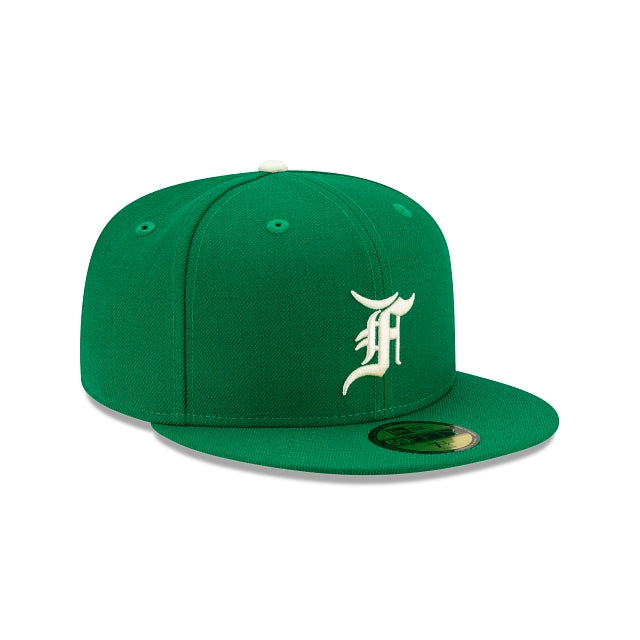 Esta gorra Fear of God Essential 59FIFTY presenta un logotipo de Fear of God en los paneles frontales, undervisor gris y el logotipo oficial de MLB Batterman en la parte trasera.