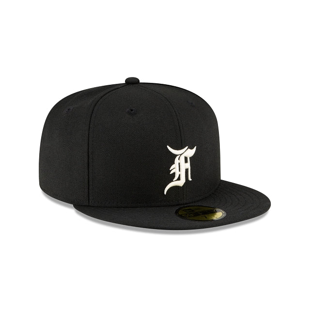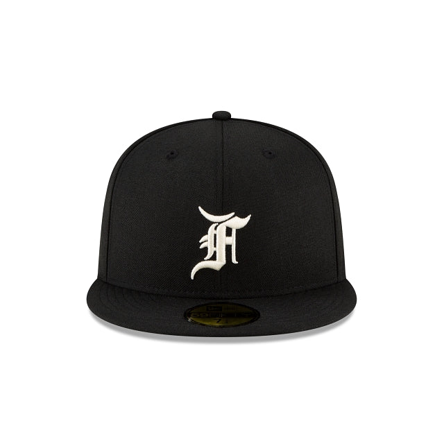 Esta gorra Fear of God Essential 59FIFTY presenta un logotipo de Fear of God en los paneles frontales, undervisor Kelly Green y el logotipo oficial de MLB Batterman en la parte trasera.