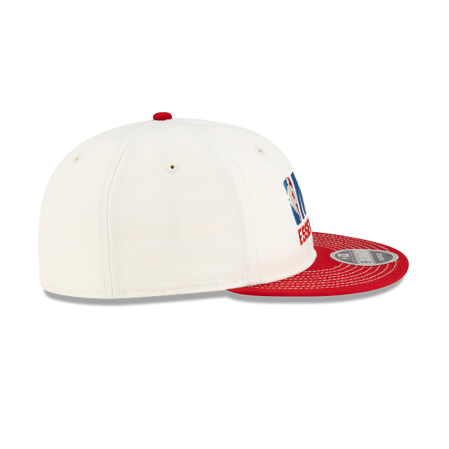 Esta gorra plana New Era 9FIFTY Retro Crown de la colección Fear of God Essentials X NBA presenta un diseño en color blanco, el logo de la NBA junto con el nombre de la NBA y debajo la palabra essentials en los paneles frontales y el script de New Era bordado del lado izquierdo. Cómprala ya.