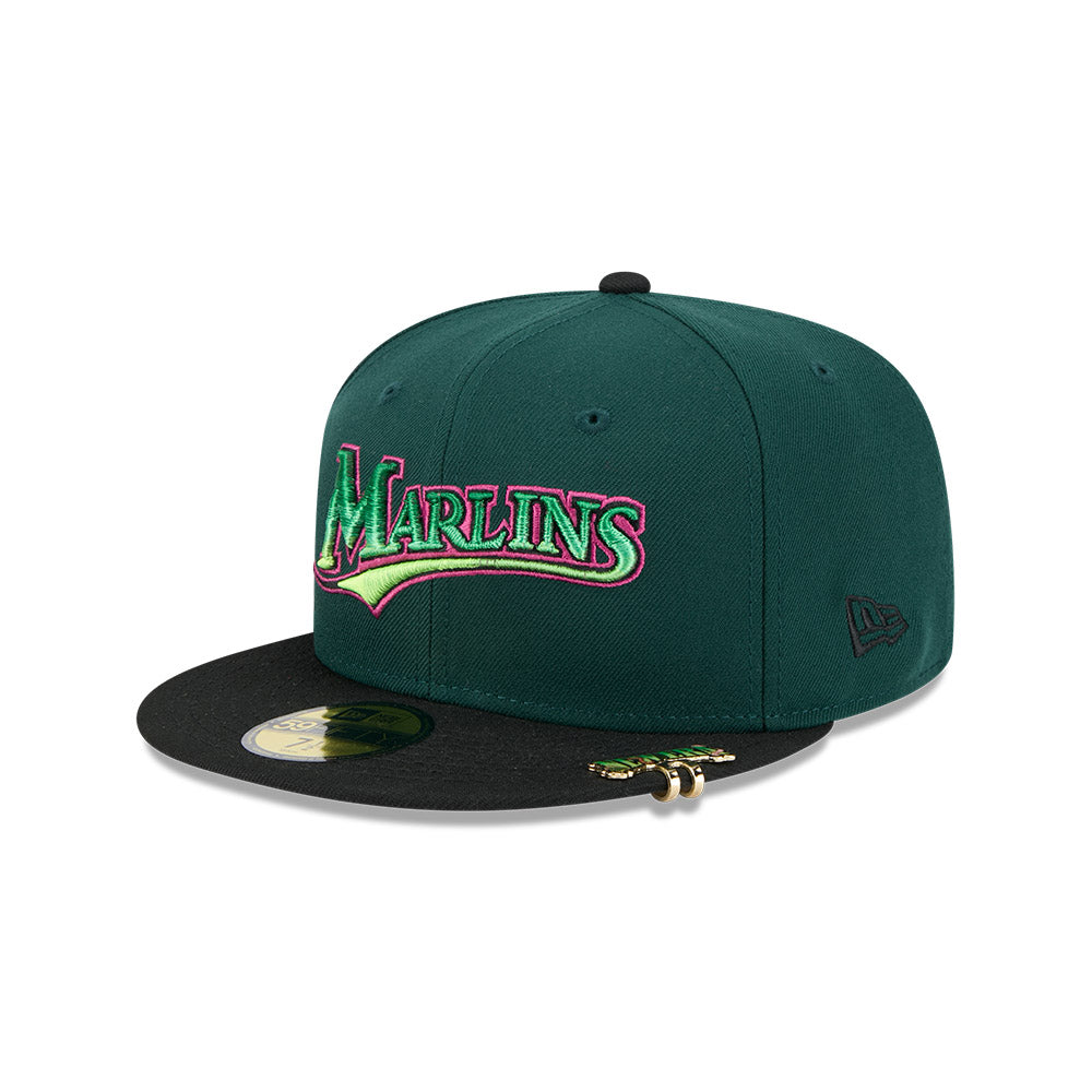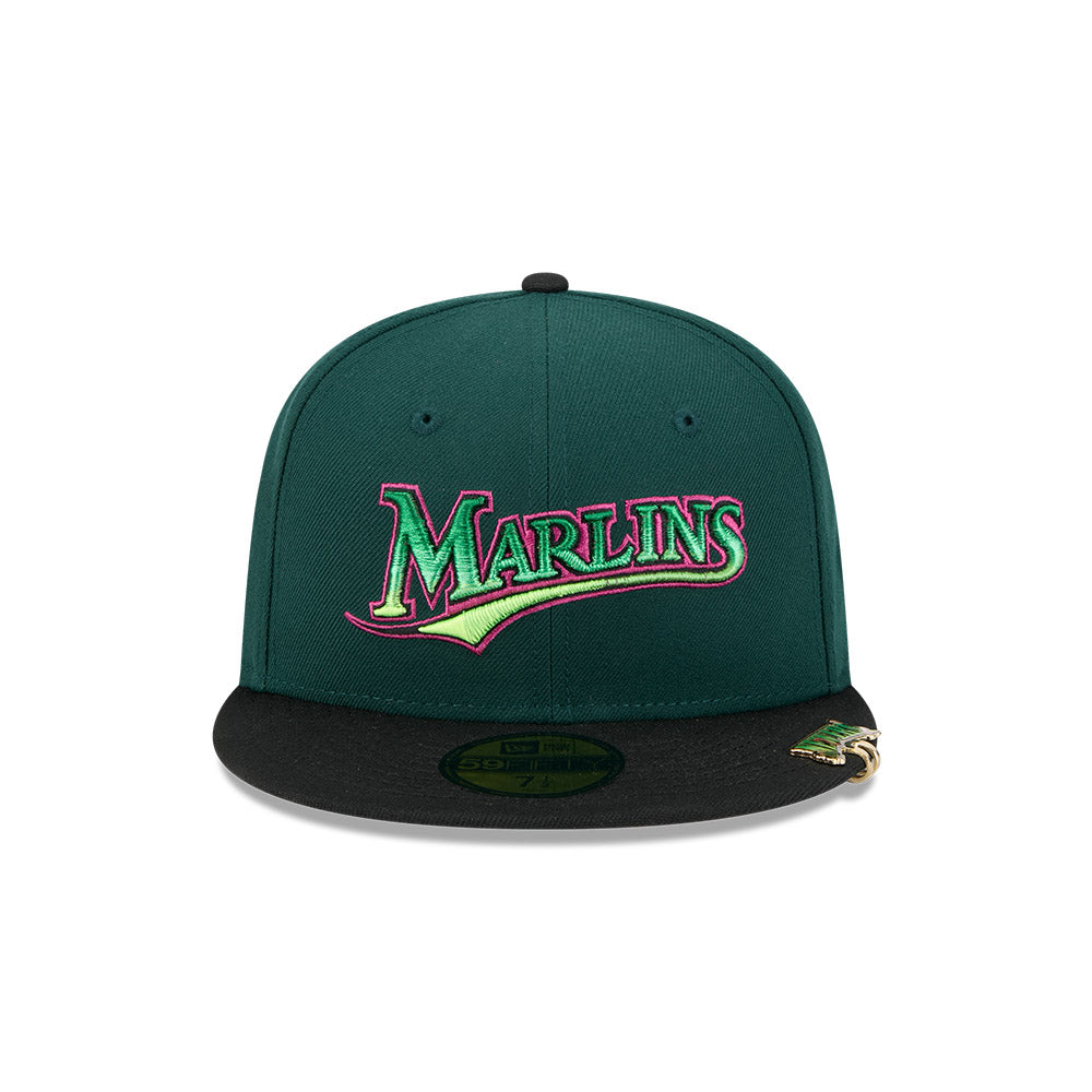 Esta gorra plana New Era 59FIFTY de Florida Marlins de la colección MLB Crawlers presenta un diseño con el nombre de los Marlins bordado en los paneles frontales, parche representativo del lado derecho, clip de la colección en el visor, el MLB Batterman al reverso y el flag de New Era bordado del lado izquierdo. Cómprala ya.